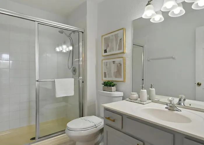 Guests, staying at No Rear Neighbor 6Br Private Pool/Spa Near Disney villa, have access to an equipped kitchen with a toaster, a stovetop, and kitchenware. Kenzie's Restaurant is a bar serving American dishes 3.7 km from the Orlando accommodation. The Orlando property is also 100 minutes' drive from Church Street train station.